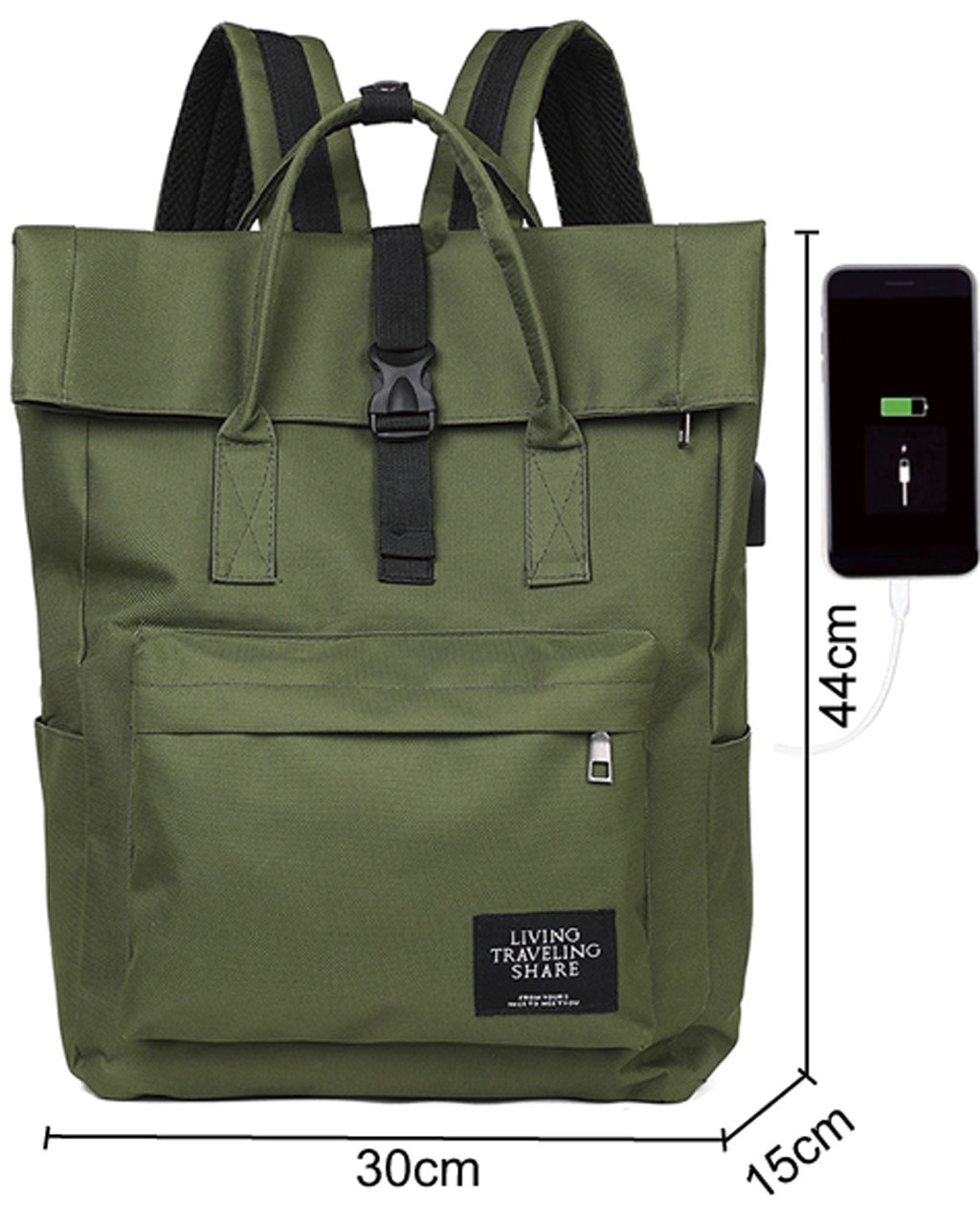 Business Rucksack mit Laden- und Kopfhöreranschluss in olivengrün