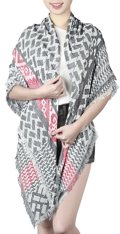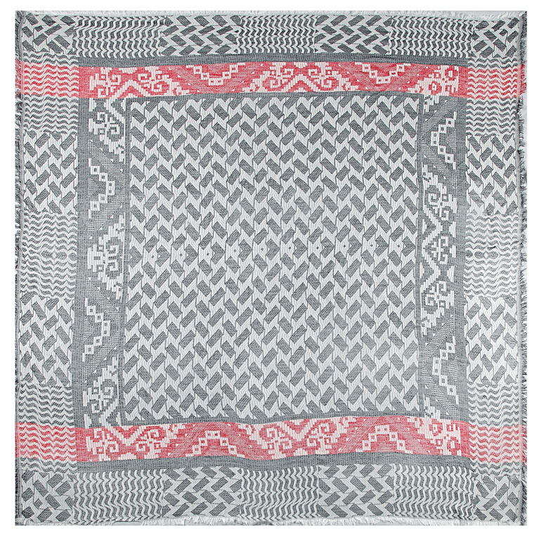 groß quadratischer Schal mit Karomuster in weiss-grau