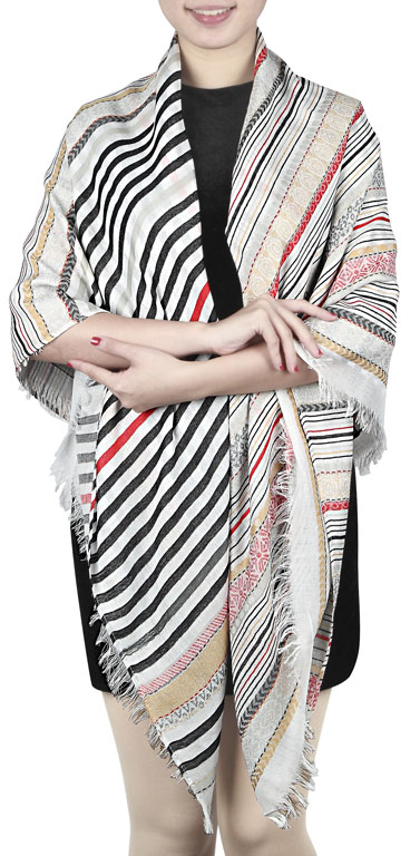 groß quadratischer Schal mit Linien und Ethnomuster in hellen kontrasten