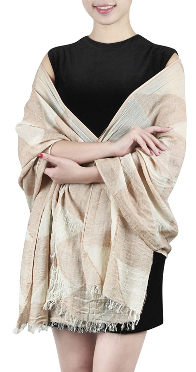 Offener Schal mit Dreieckmuster und kurzen handgeschnittenen Fransen in hell beige-beige