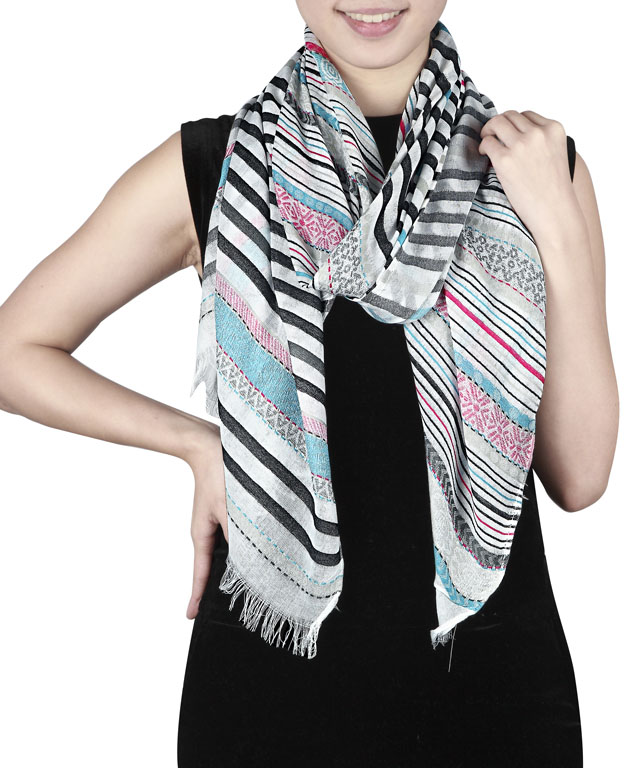 Offener Schal mit Linien und Ethnomuster in hellen kontrasten