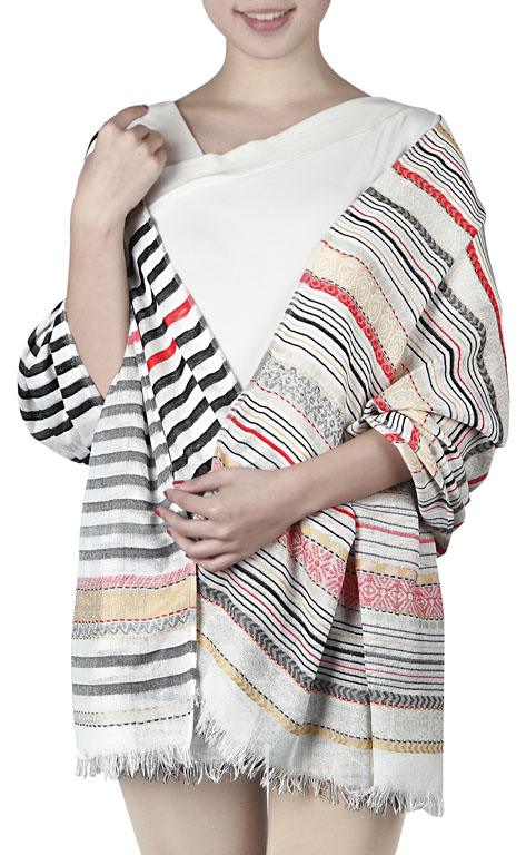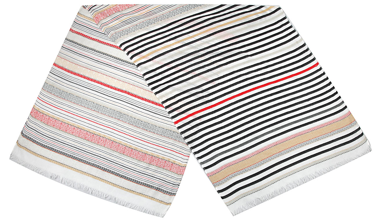 Offener Schal mit Linien und Ethnomuster in hellen kontrasten