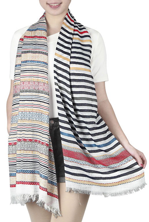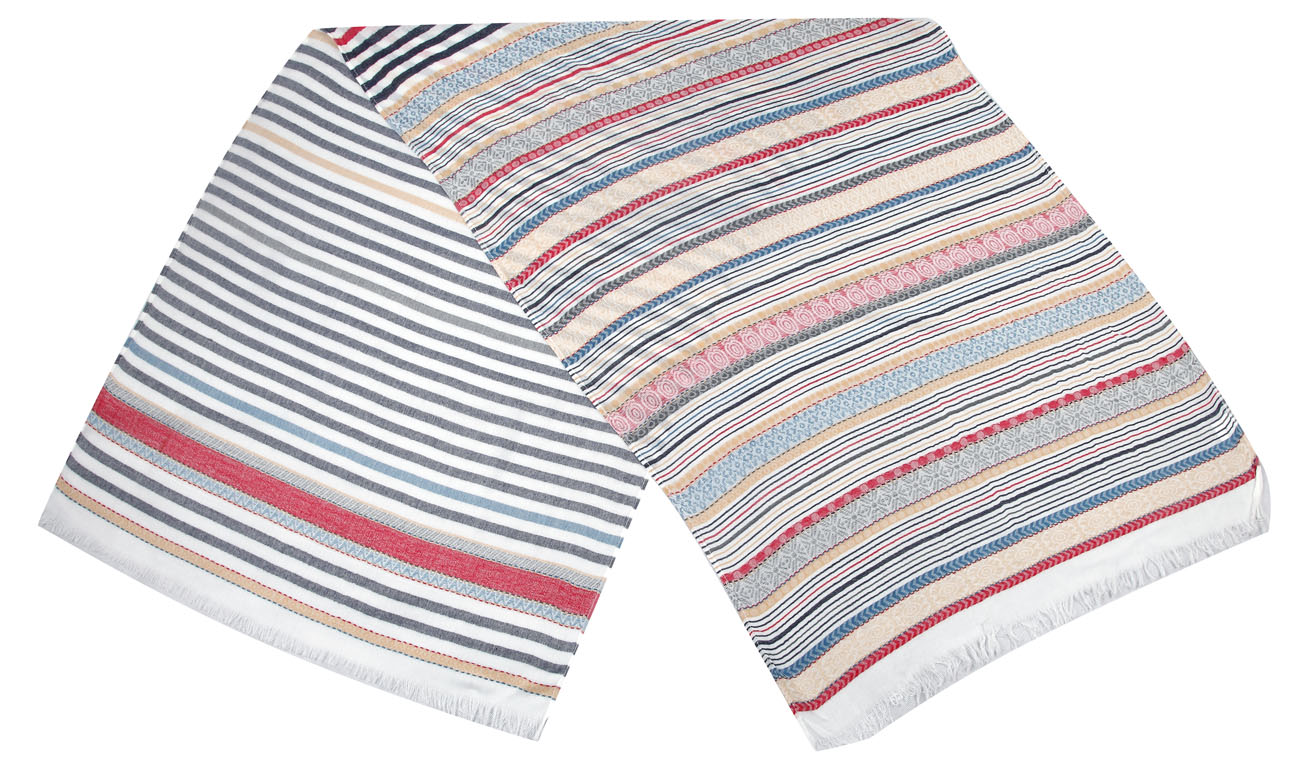Offener Schal mit Linien und Ethnomuster in hellen kontrasten