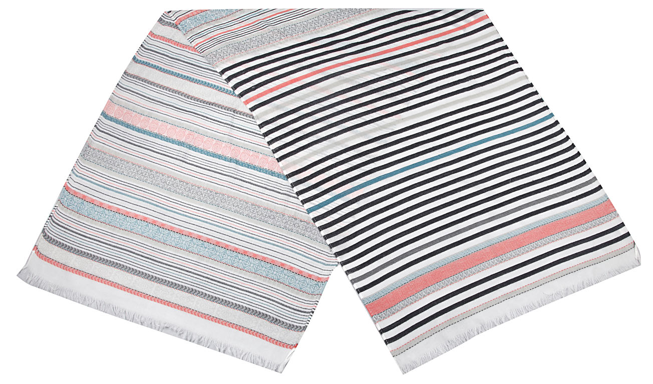 Offener Schal mit Linien und Ethnomuster in hellen kontrasten