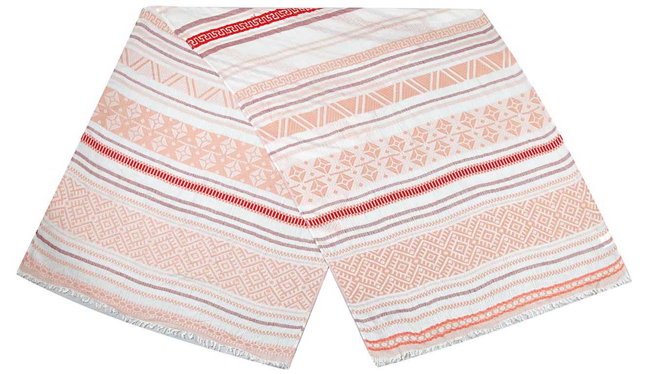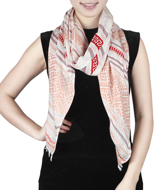 Offener Schal mit und Ethnomuster in weiss-apricot
