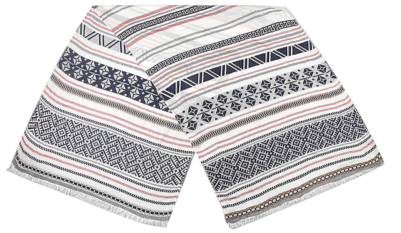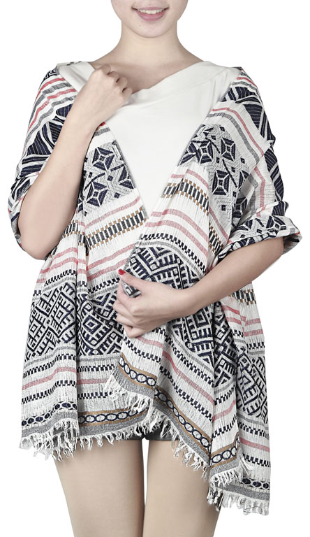 Offener Schal mit und Ethnomuster in weiss-schwarz-rosa