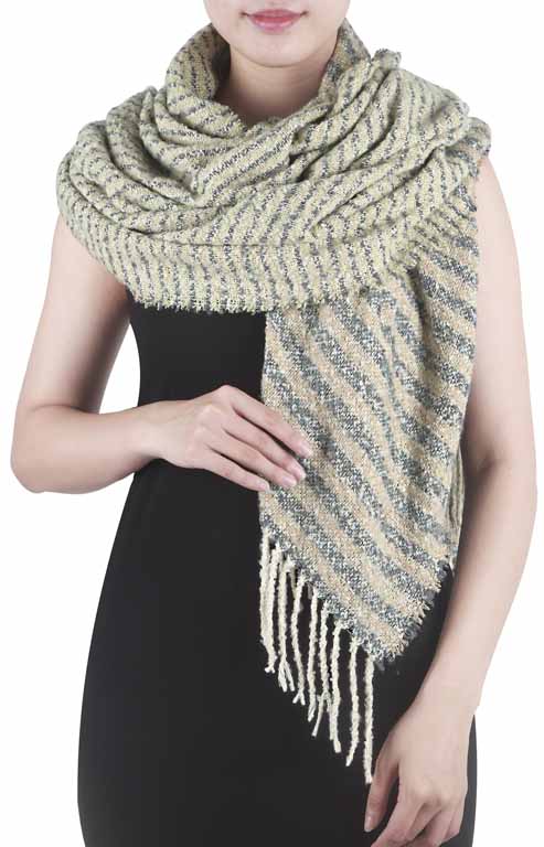 Schultertuch, übergroß mit Linien in grün und grau