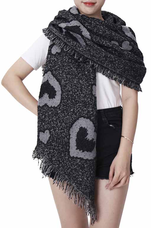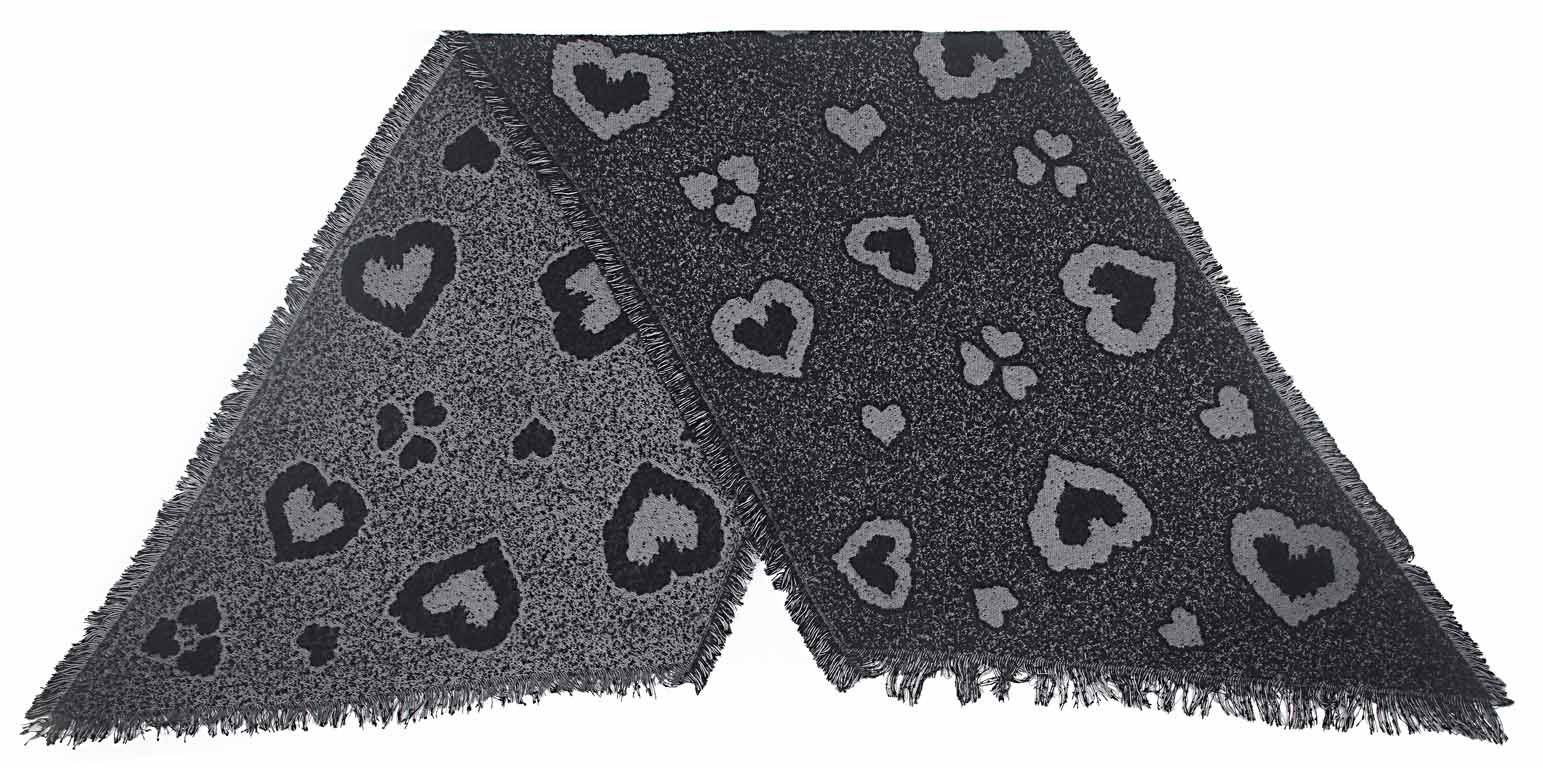 Schultertuch, Rautenschal mit Herzen in schwarz