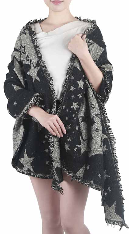 Schultertuch, Rautenschal mit Sternen in grau