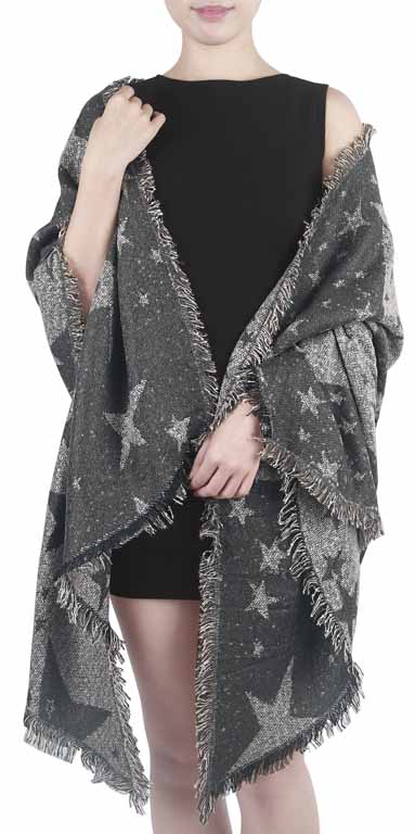 Schultertuch, Rautenschal mit Sternen in grau