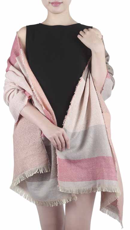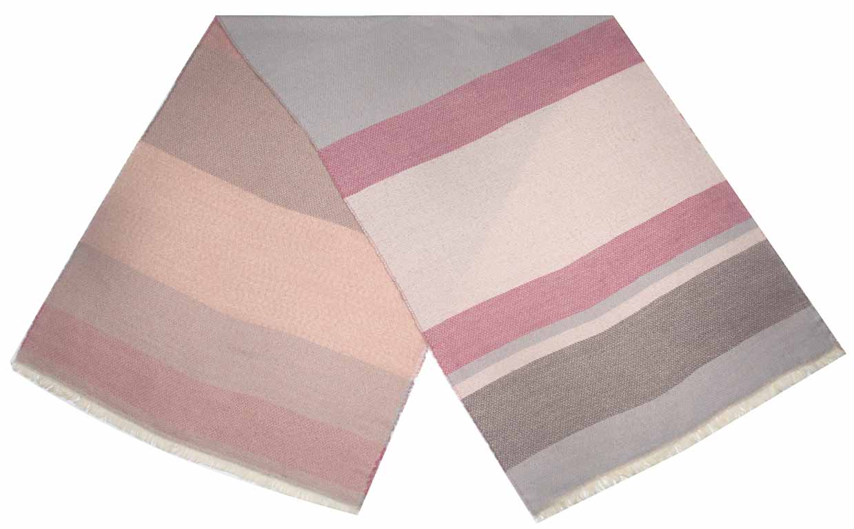Schultertuch mit breiten Streifen und Farbblöcken in rosa und grau