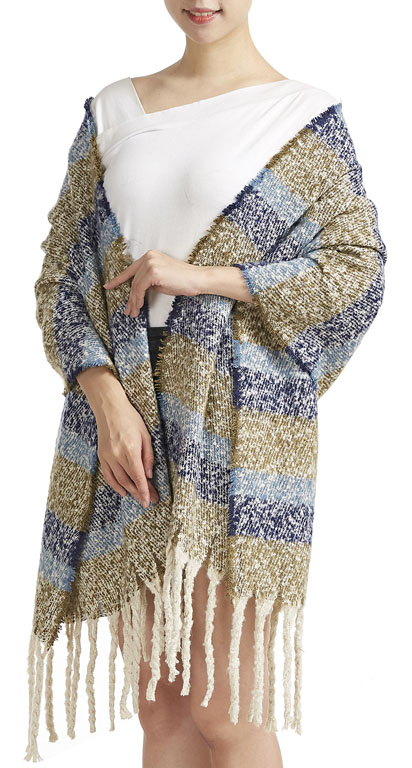 Winterschal mit Streifen in blau und braun