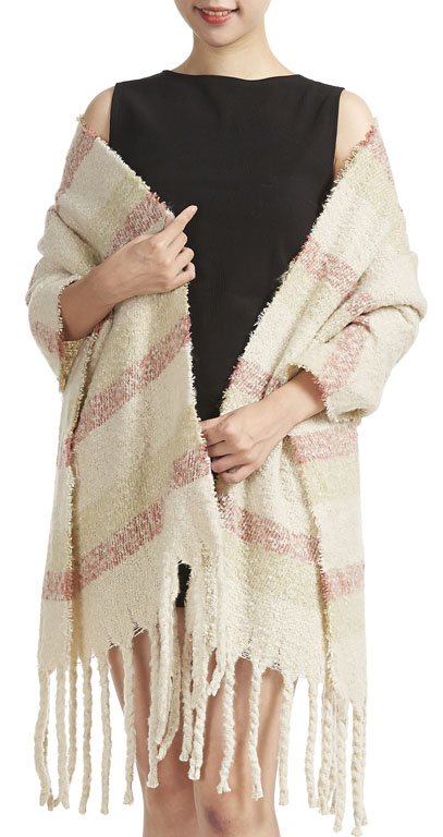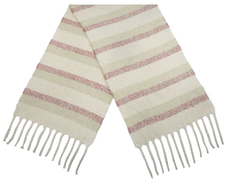 Winterschal mit Streifen in natur und rot