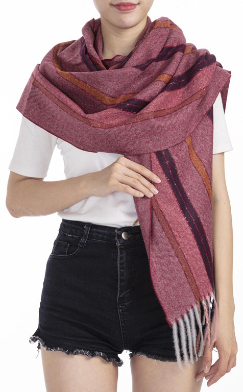 Winterschal rot, mit farbigen Sreifen, für Damen