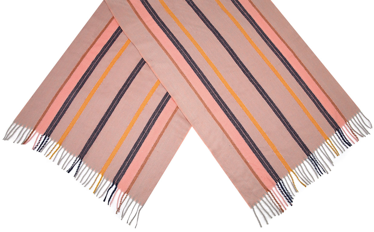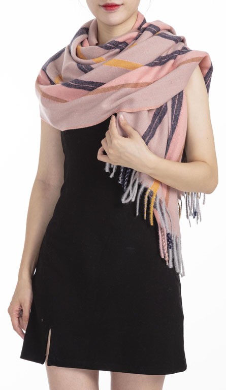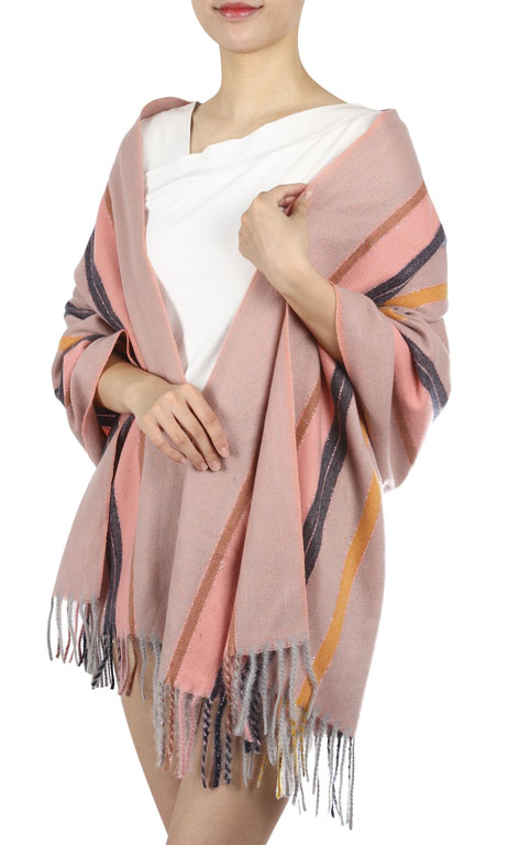 Winterschal rosa, mit farbigen Sreifen, für Damen