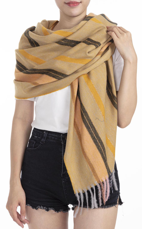 Winterschal orange rosa, mit farbigen Sreifen, für Damen