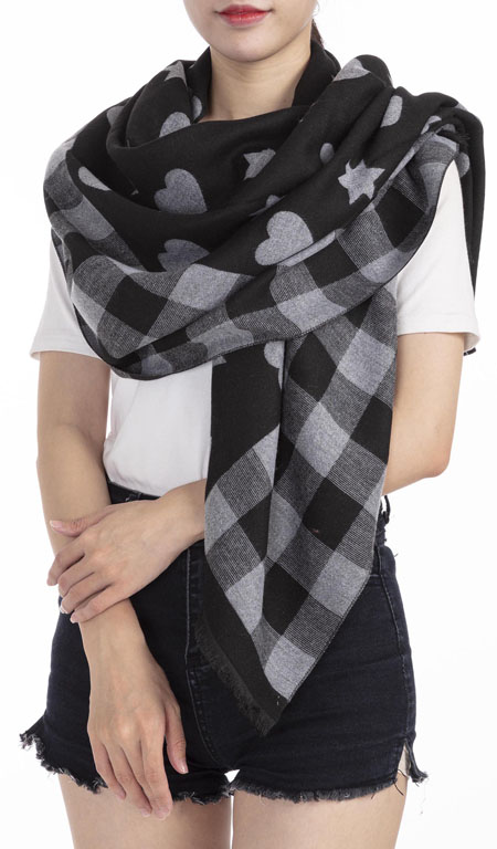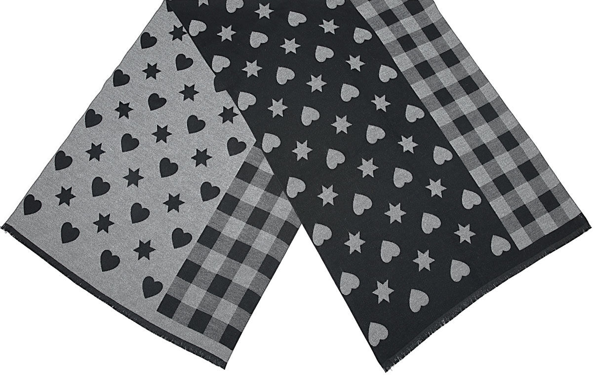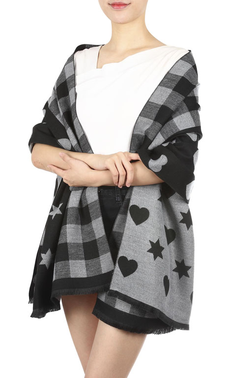 Winterschal kariert, mit Herzen und Sternen für Damen