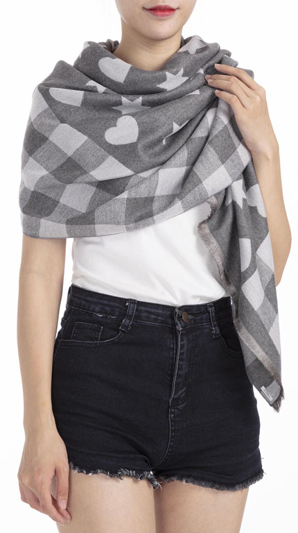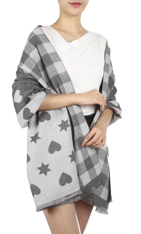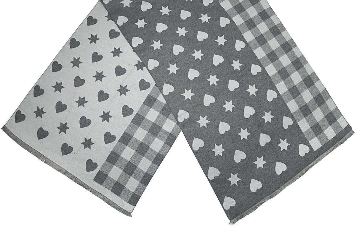 Winterschal kariert, mit Herzen und Sternen für Damen