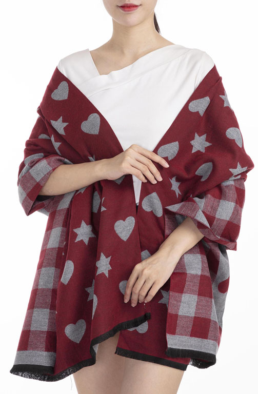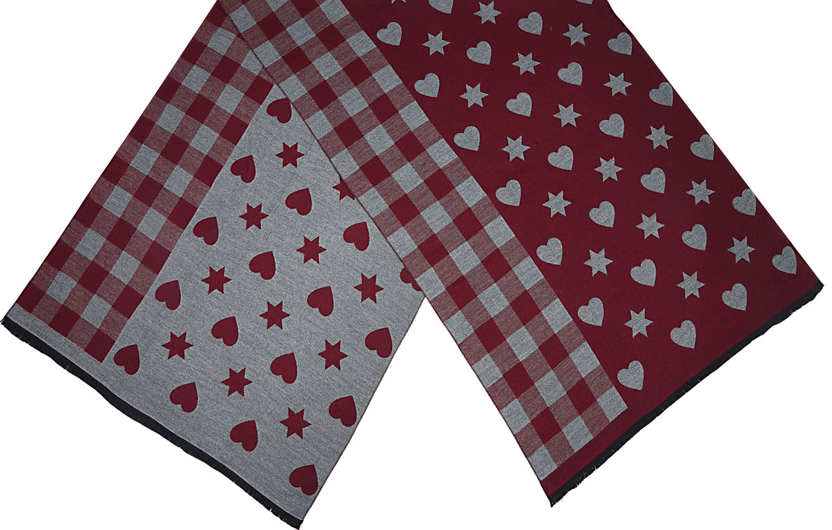 Winterschal kariert, mit Herzen und Sternen für Damen