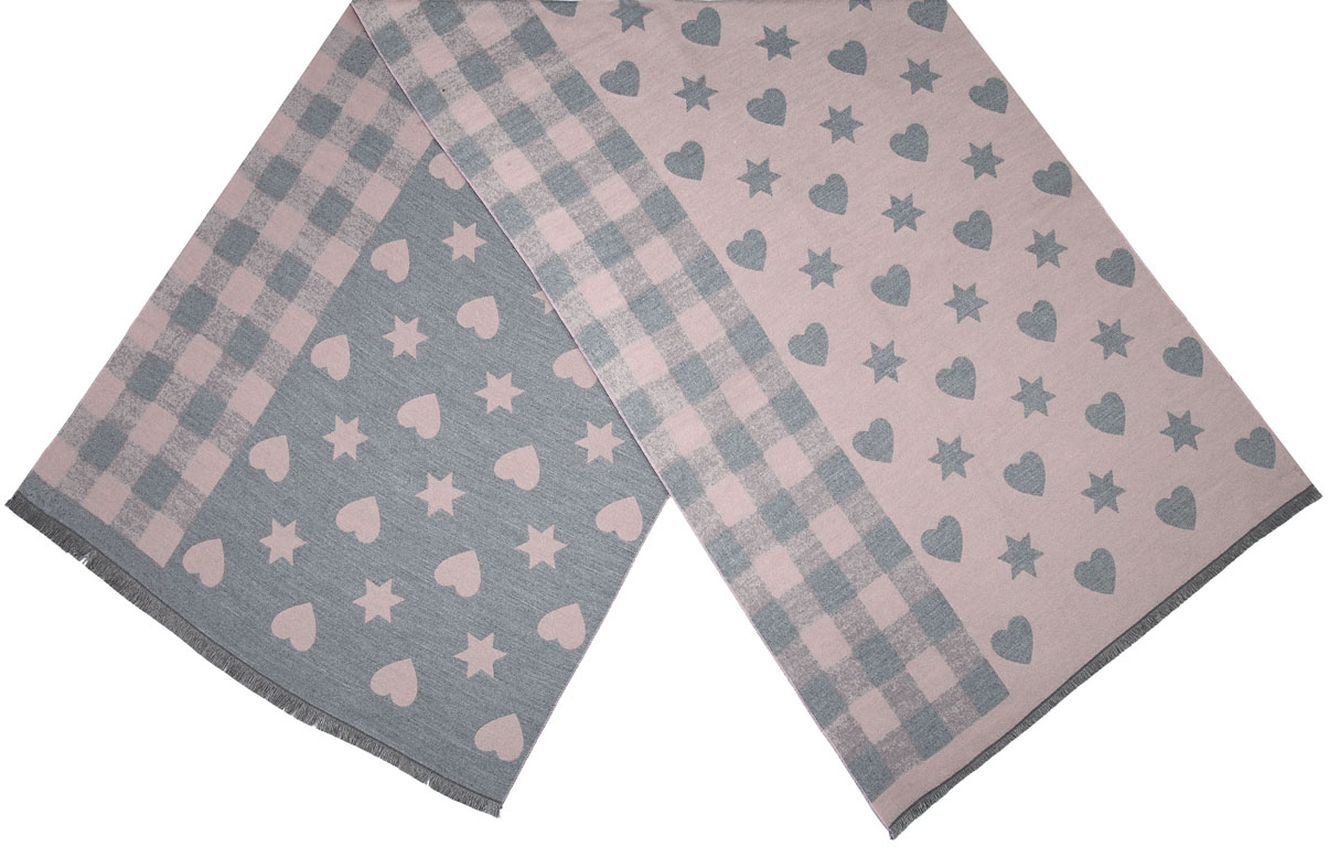 Winterschal kariert, mit Herzen und Sternen für Damen
