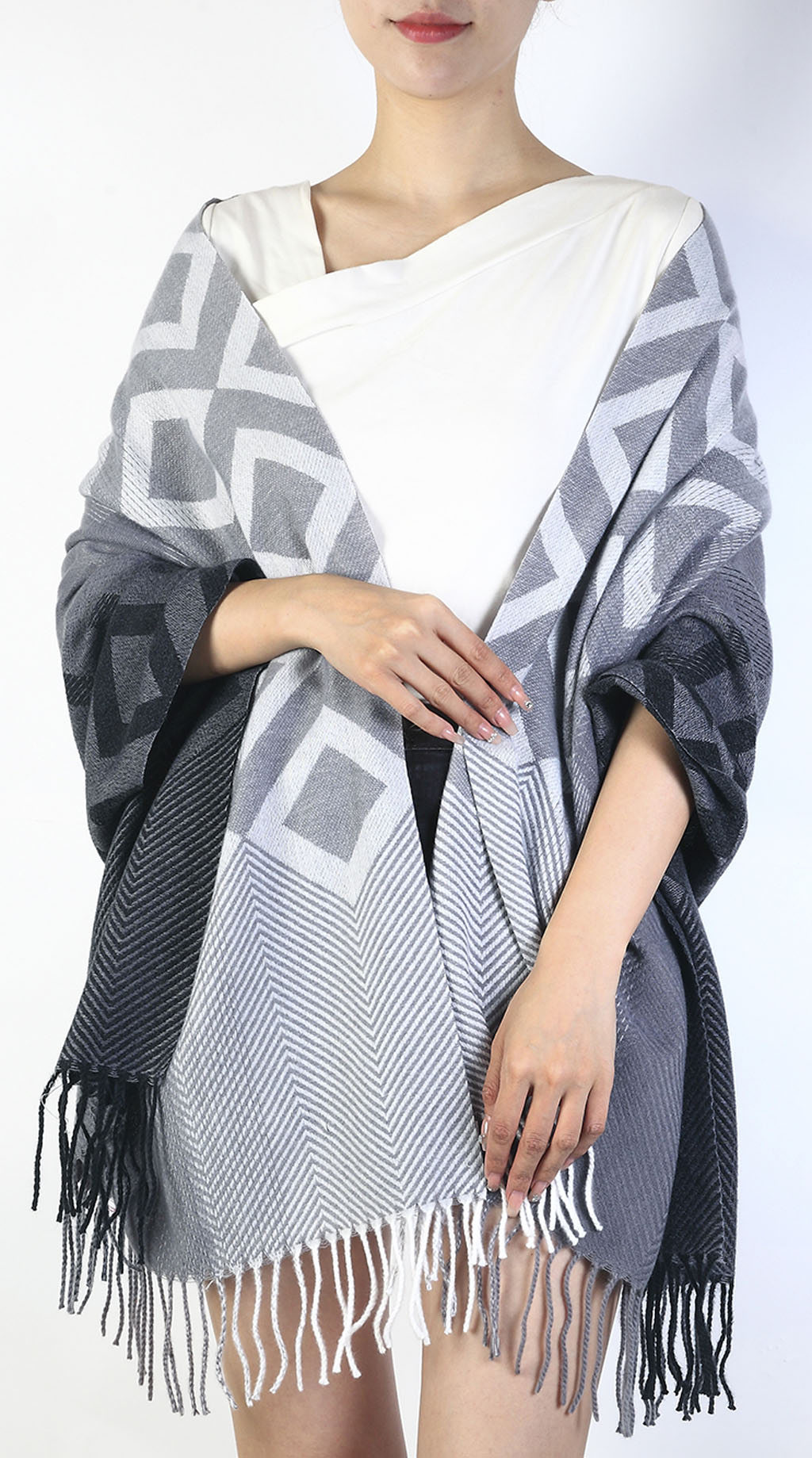 Winterschal mit geometrischem Muster un Farbenverlauf für Damen