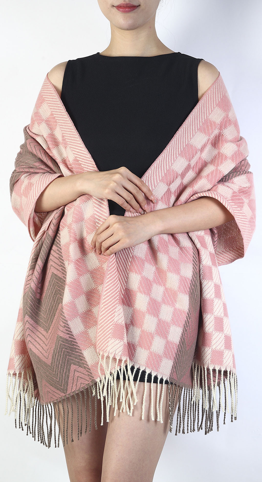Mehrfarbiger Winterschal mit Streifen, Quadrat und Wellen für Damen