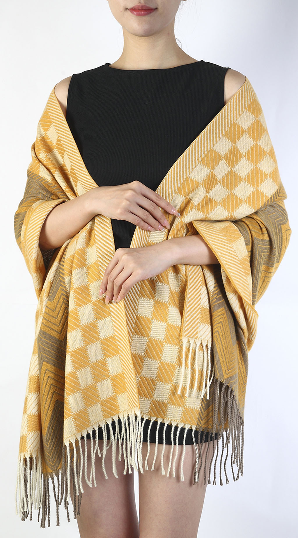Mehrfarbiger Winterschal mit Streifen, Quadrat und Wellen für Damen