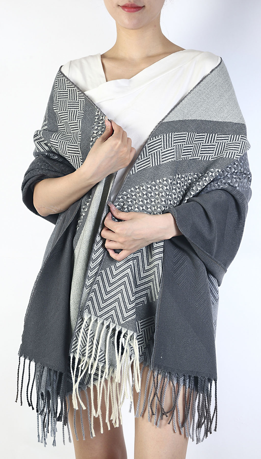 Mehrfarbiger Winterschal mit Streifen und geometrischem Muster für Damen