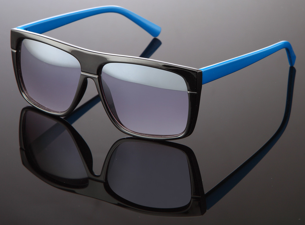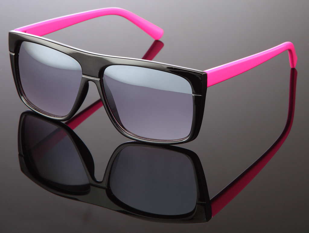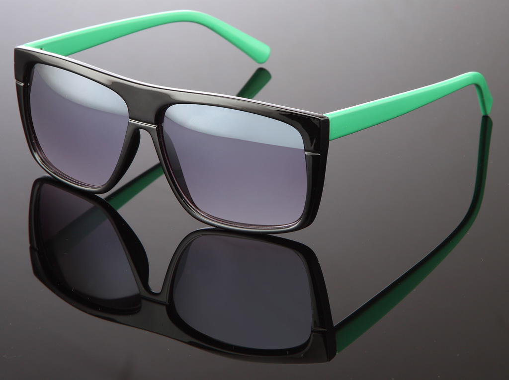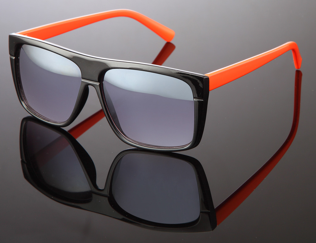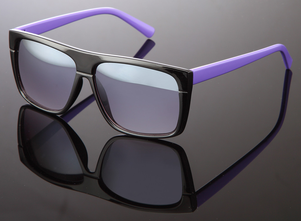 Glänzende Wayfarer Sonnenbrille in versch. farbigen Bügeln