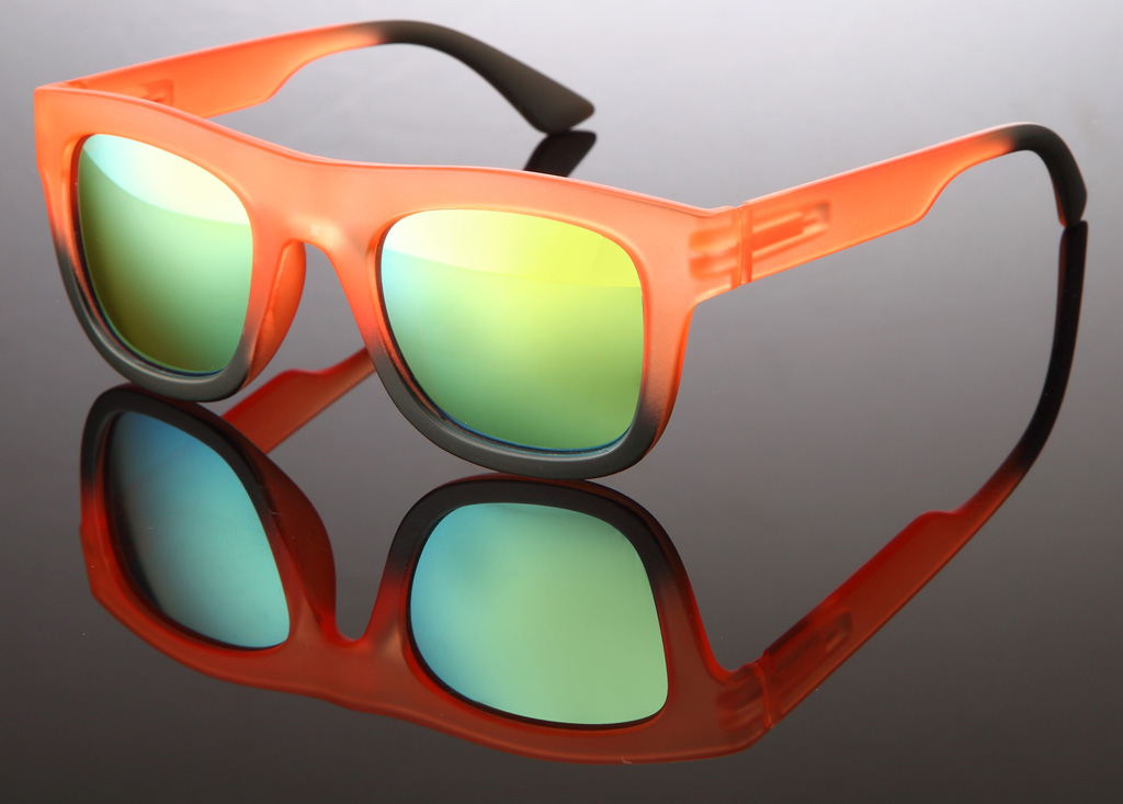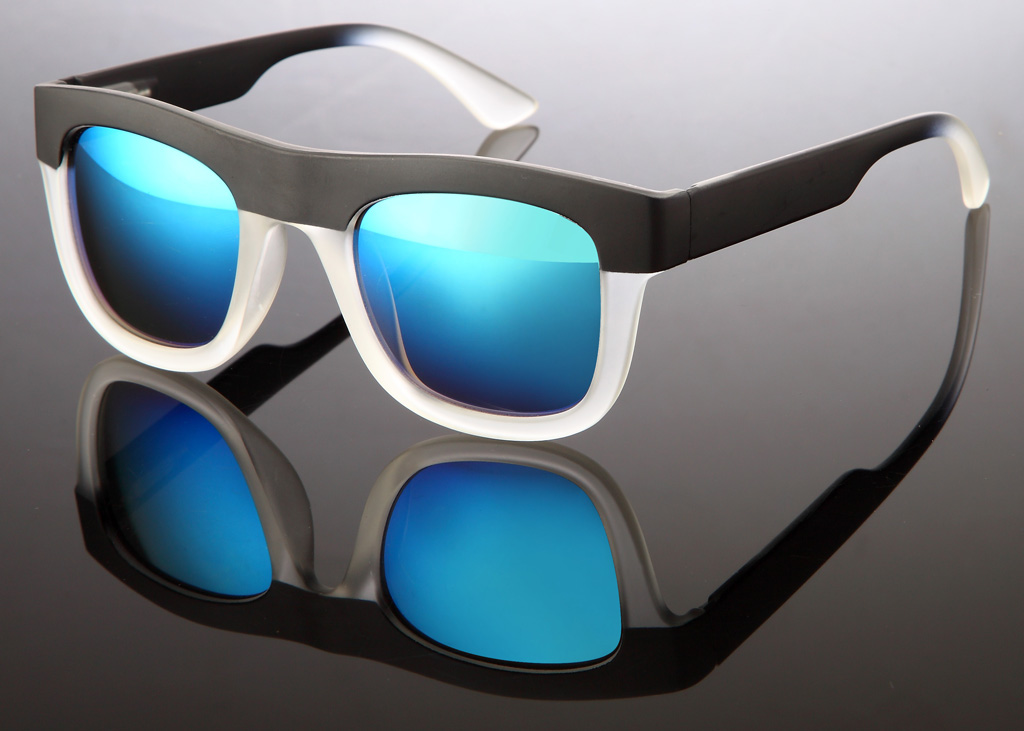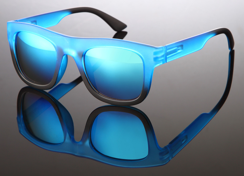 Matt-transparente u. melierte Wayfarer Sonnenbrille mit verspiegelten Gläsern