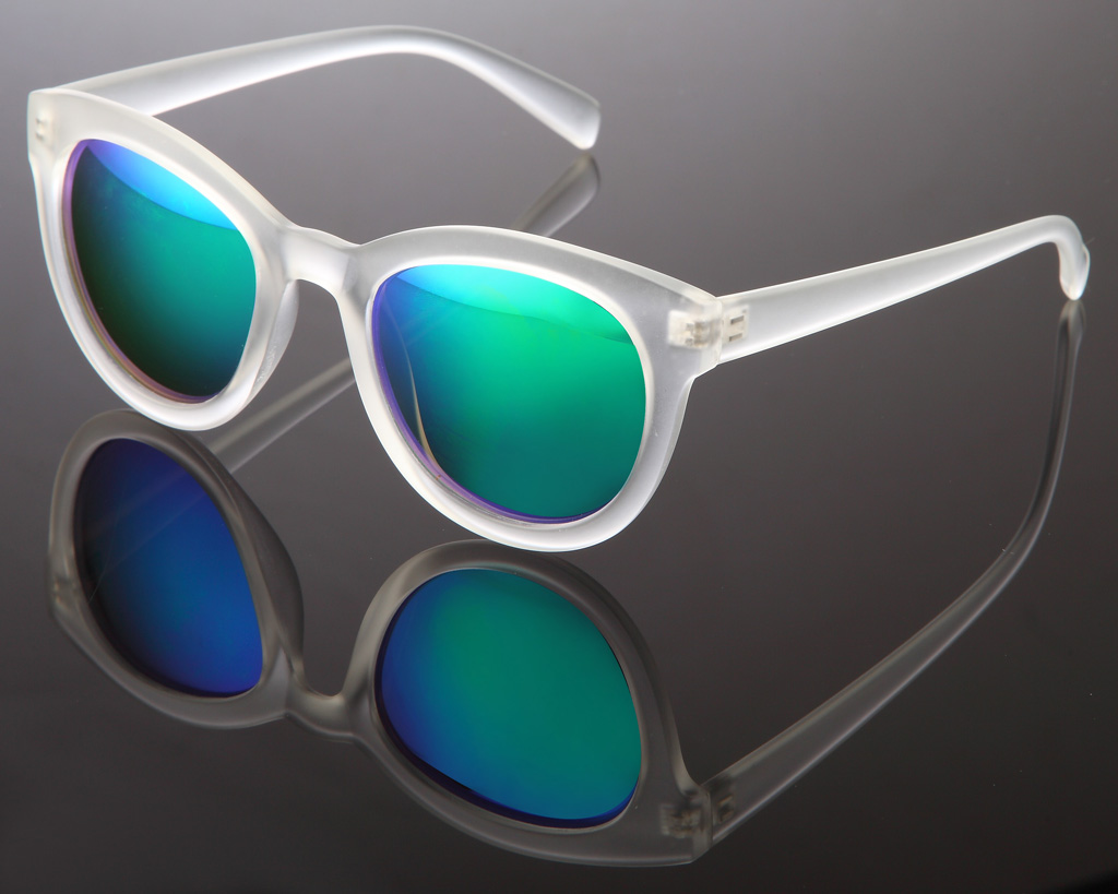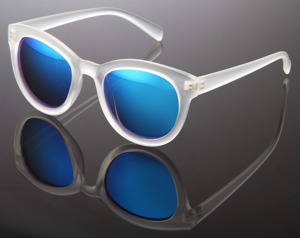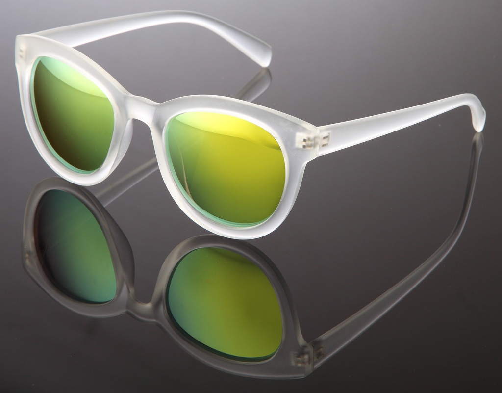 Matt-transparente Wayfarer Sonnenbrille mit verspiegelten Gläsern