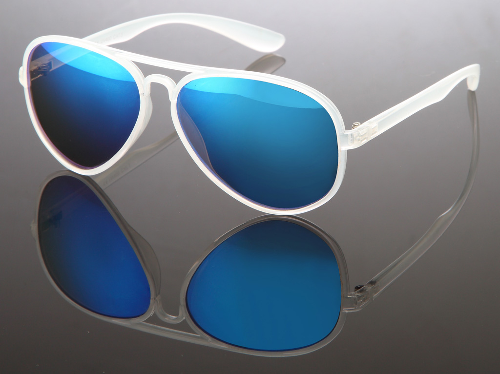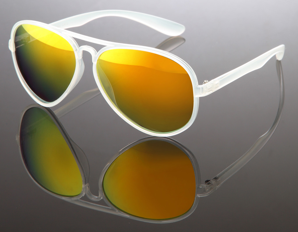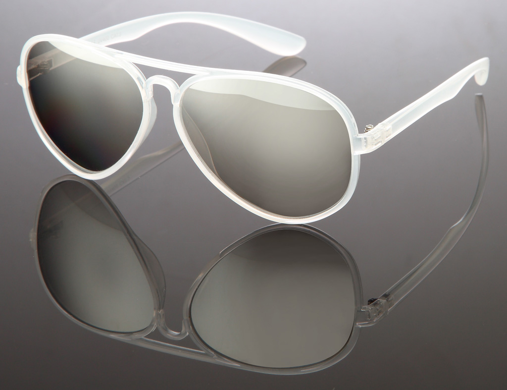 Milch-transparente Pilotenbrille mit verspiegelten Gläsern