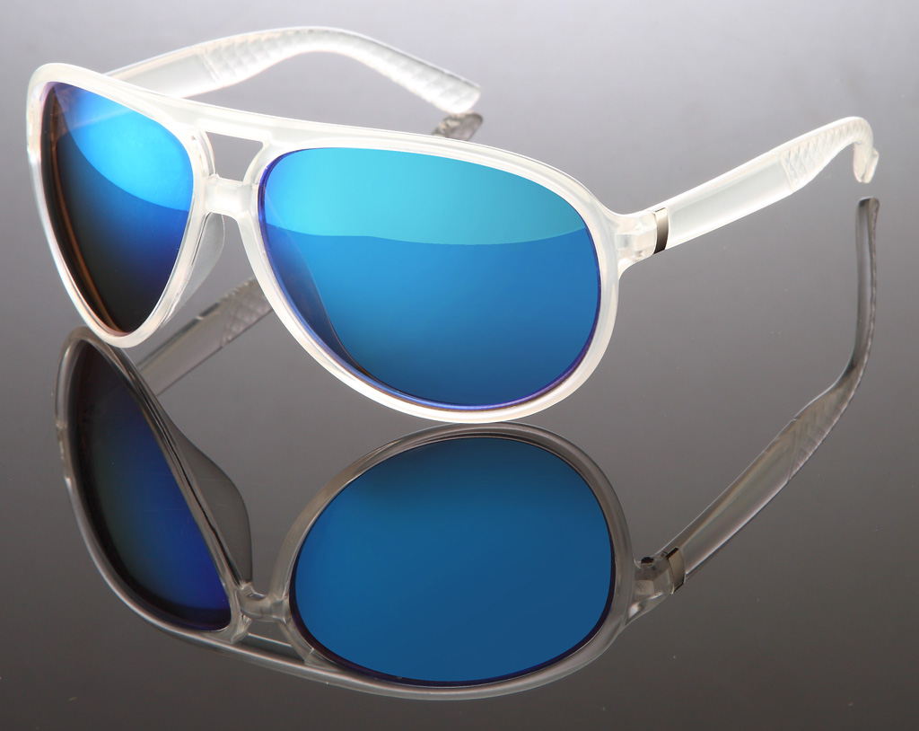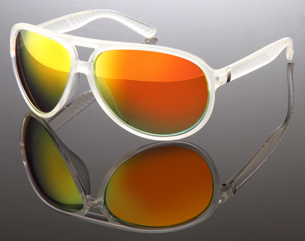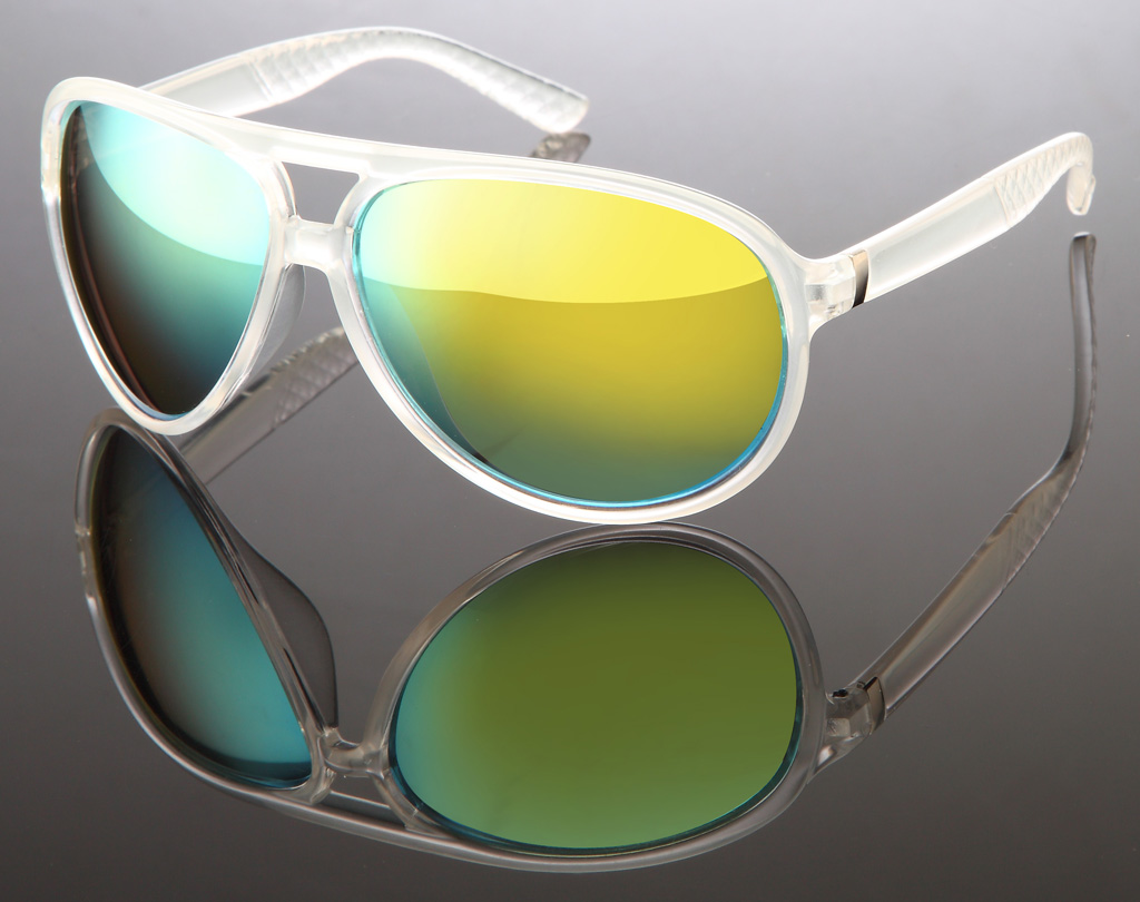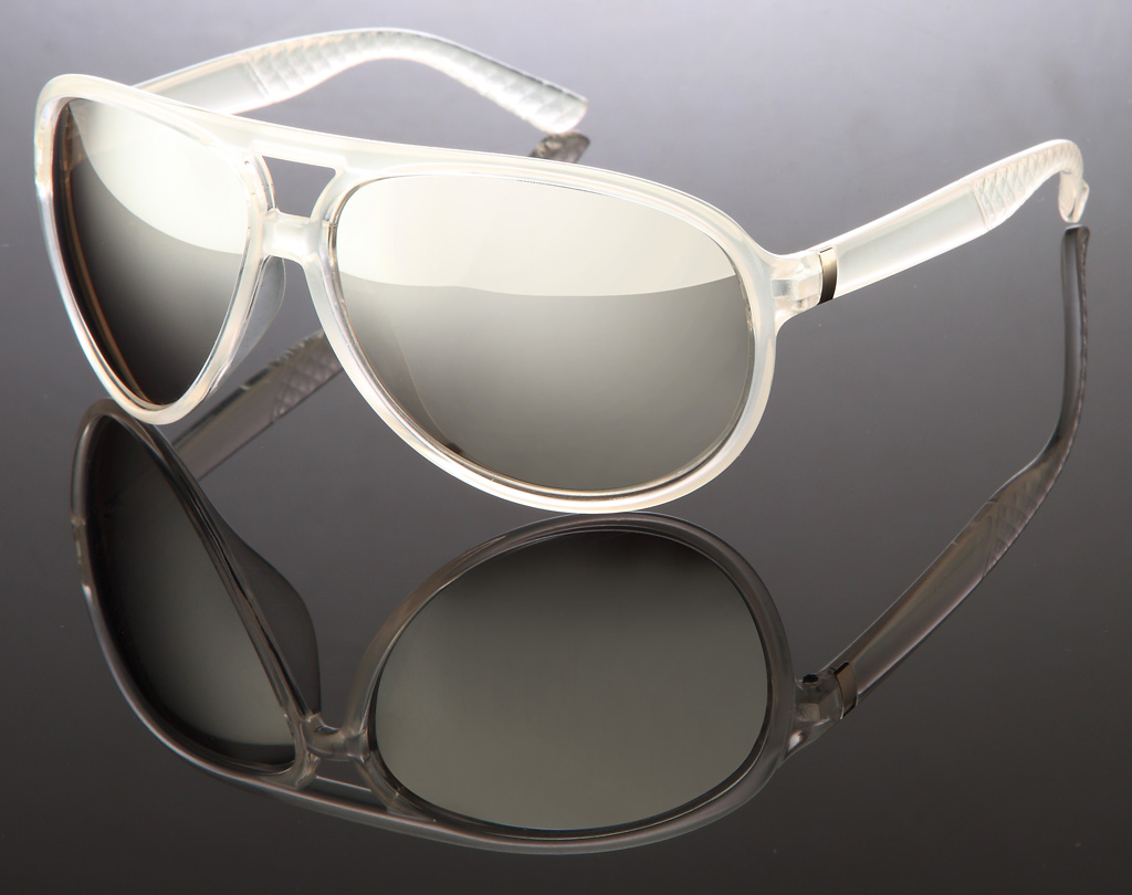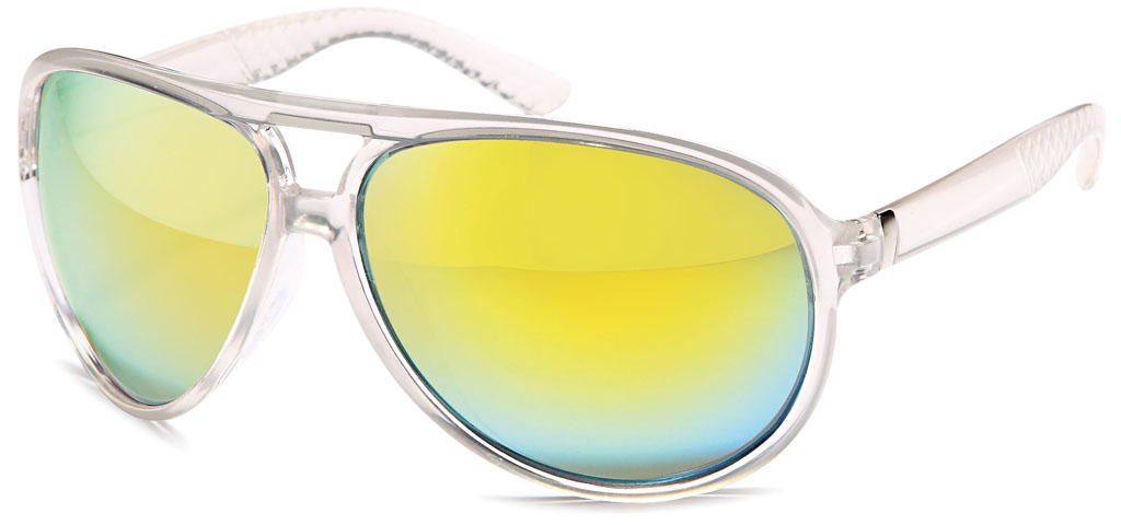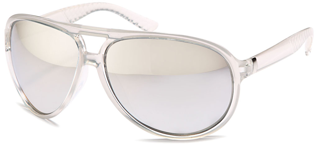 Milch-transparente Pilotenbrille mit verspiegelten Gläsern