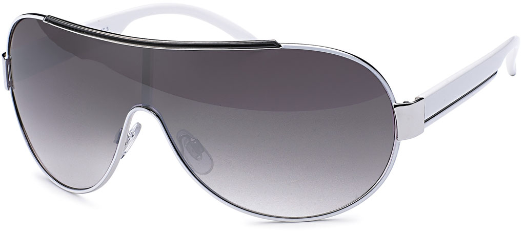 Sonnenbrille Monoscheibe mit lackiertem Rahmen und weißen Bügeln