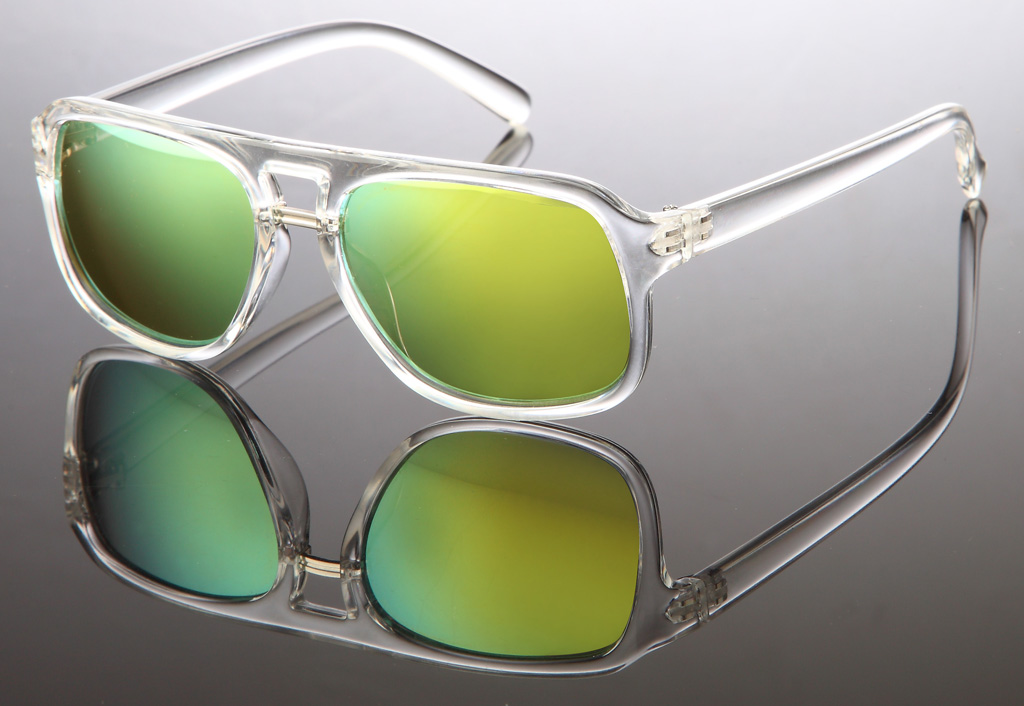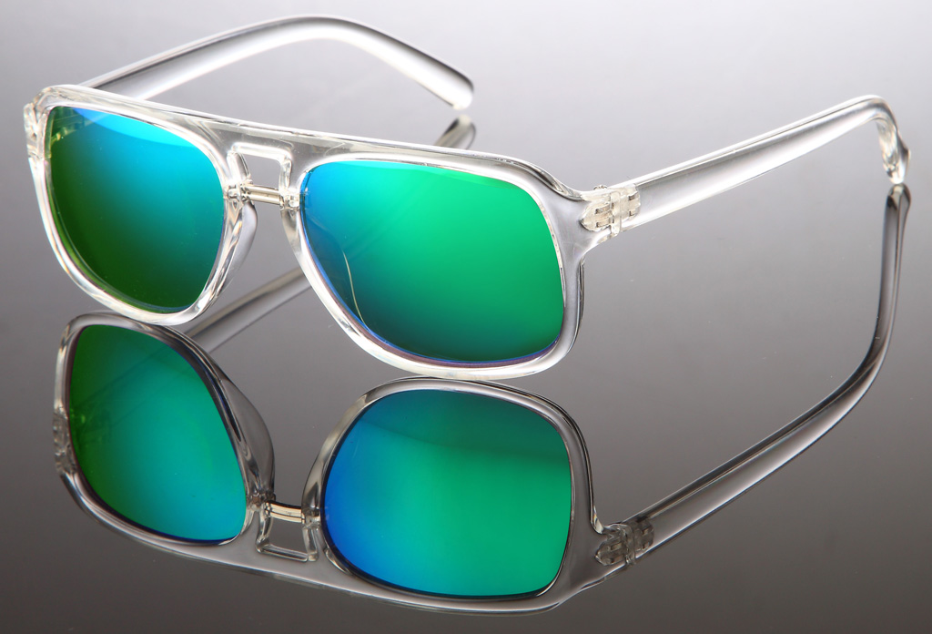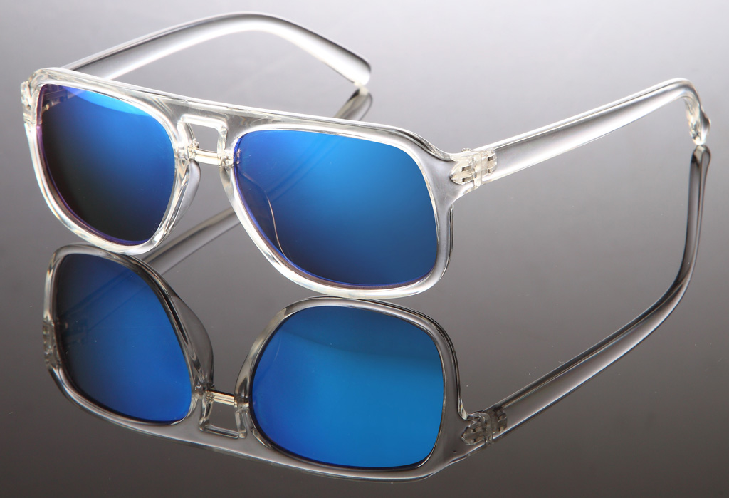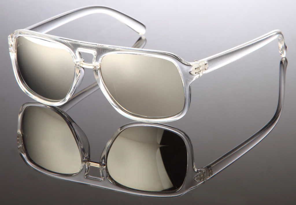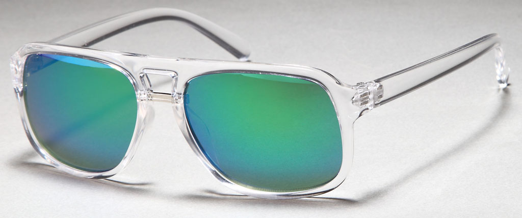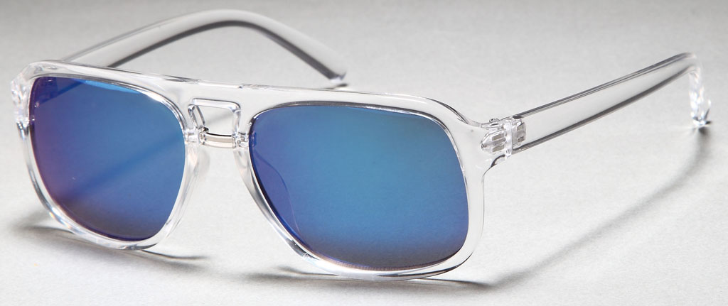 Transparente Wayfarer Sonnenbrille mit doppeltem Nasensteg u. verspiegelten Gläsern