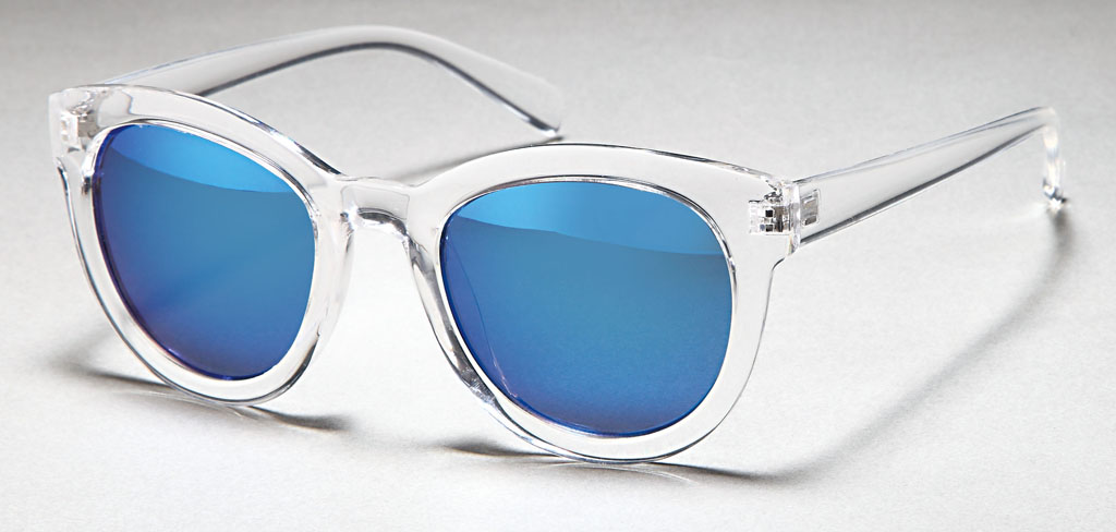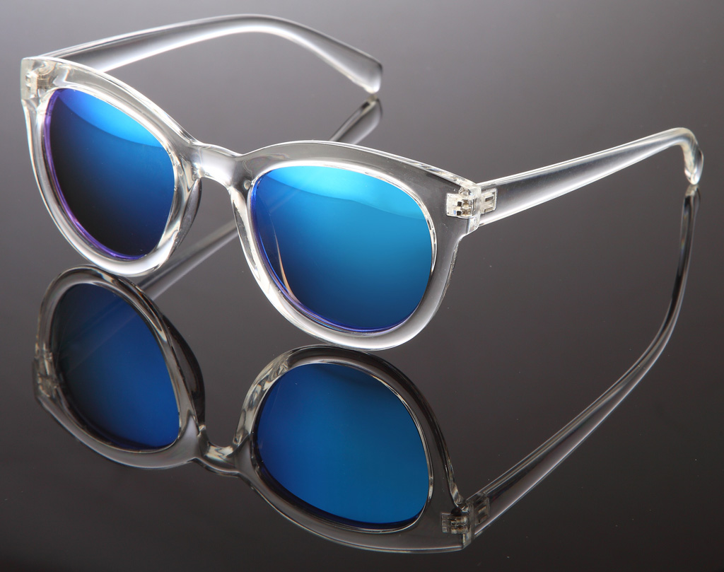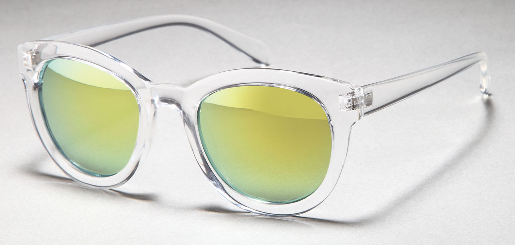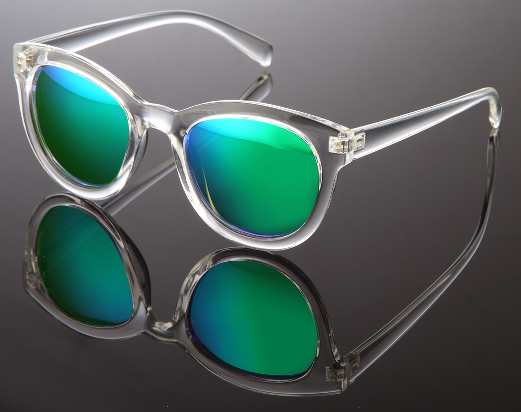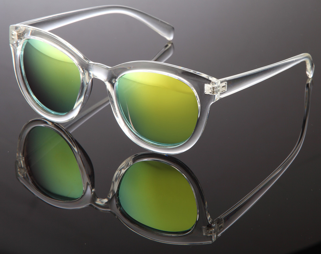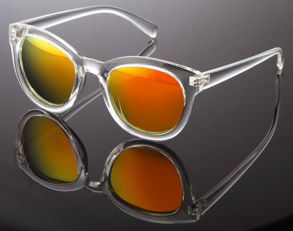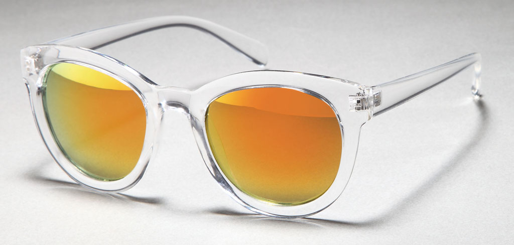 Transparente Wayfarer Sonnenbrille mit verspiegelten Gläsern